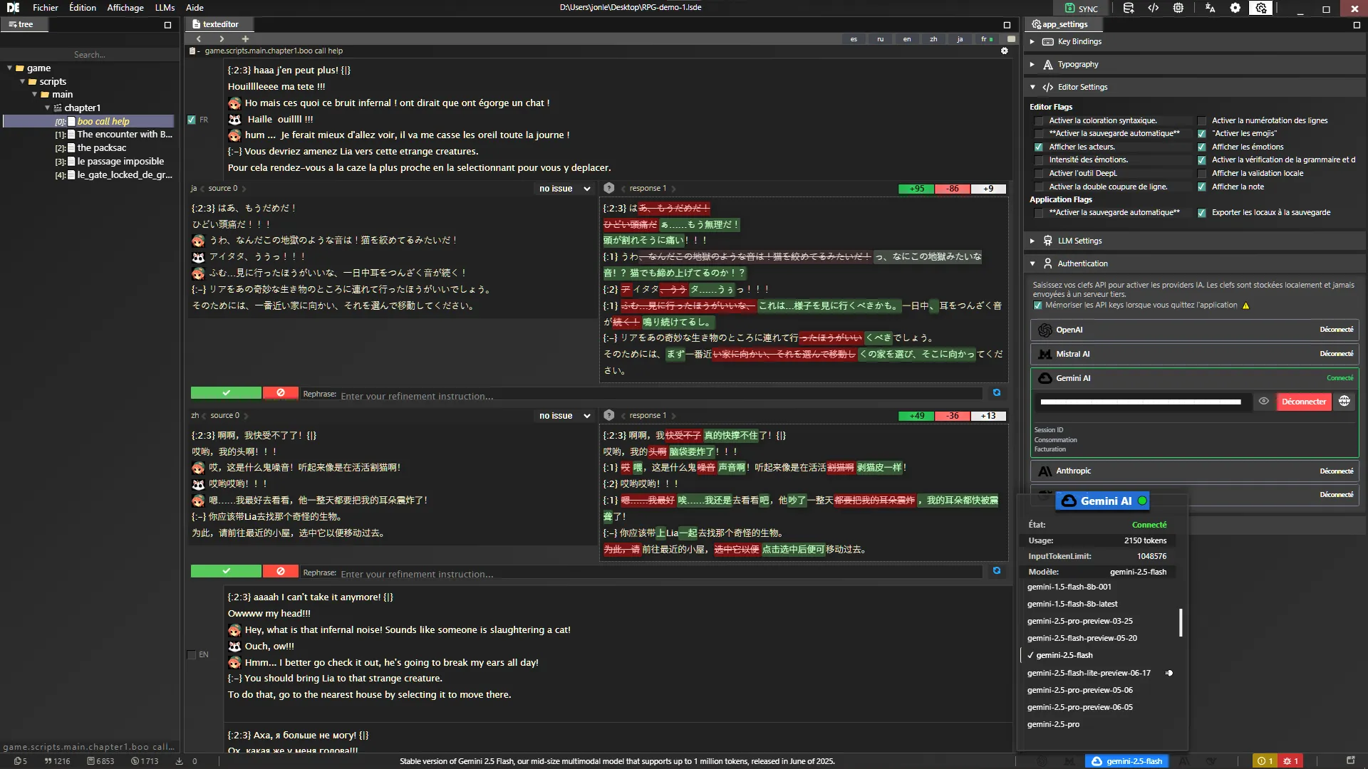 Thanks to LSDE, easily localize your games: dialogues, menus, and texts are adapted, and automatically generated voices enrich the narrative atmosphere of your world. Create and customize your characters in LSDE to manage and fully integrate them into your storyline, thus guaranteeing a coherent and vibrant story.